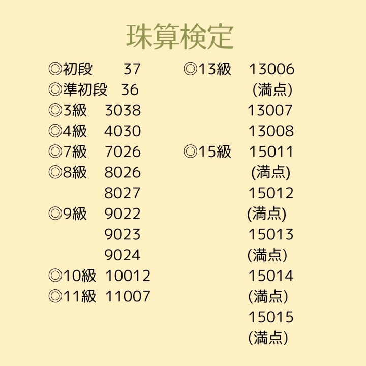 年中Sちゃん 15級、小2Kちゃん珠算1級合格!